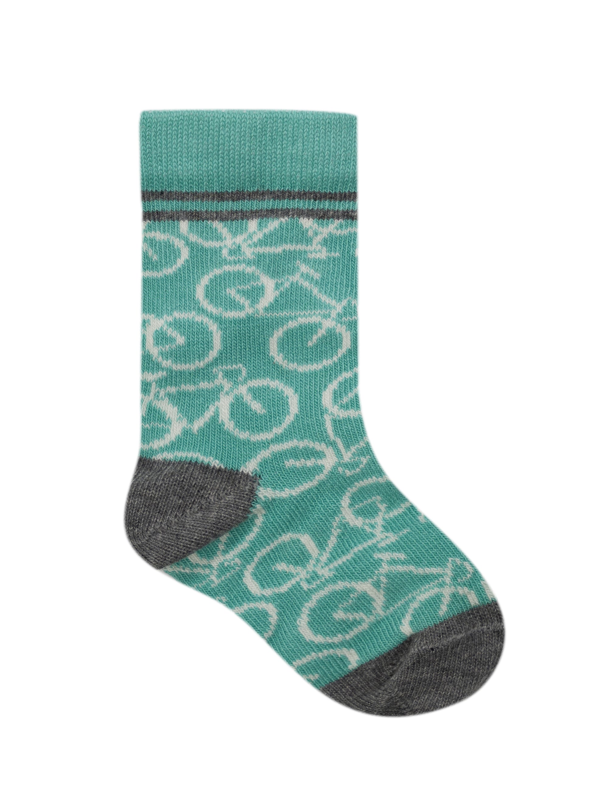 A playful bicycle design for little future cyclists. The socks are made from a high-quality cotton blend, with flexible and breathable yarns ensuring a comfortable and fresh feel for tiny feet.